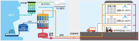 덧붙여 LNG냉열을 활용할 시 70%의 비용 절감 효과가 있어 전력비용 절감 및 온실감소 저감에 큰 기대를 하고 있다.