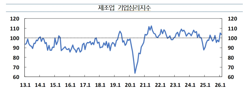 제조업 기업심리지수(CBSI)는 103.8로 전월 대비 1.2포인트 하락했다. 자금사정, 신규수주, 생산 지표가 동반 약화된 영향이다. 다만 다음 달 전망지수는 105.7로 2.9포인트 상승해 회복 기대를 반영했다. 업황BSI는 71로 소폭 하락했지만 생산·매출·신규수주 등 주요 지표의 다음 달 전망은 모두 개선됐다.