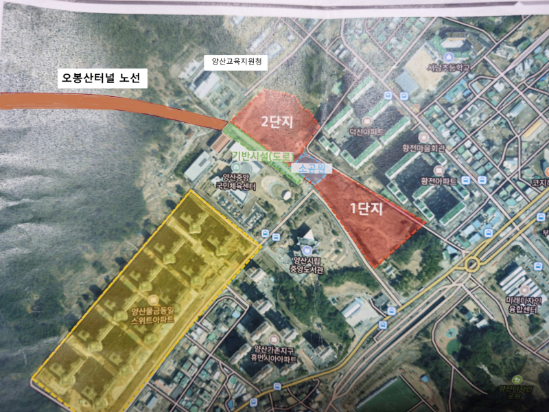 양산시 물금읍 서남초교 통학로가 신축 아파트 건설 현장과 터널 공사장에 둘러싸이면서 안전을 위협 받는다. 가촌리 힐스테이트 아파트가 내달 착공하면 서남초등학교 등굣길이 사라진다. 이에 더해 원동면 토교마을까지 연결되는 연장 2.2km 오봉산터널 공사까지 내년에 첫삽을 떠 시와 교육 당국은 대안 통학로 찾기에 고심한다.