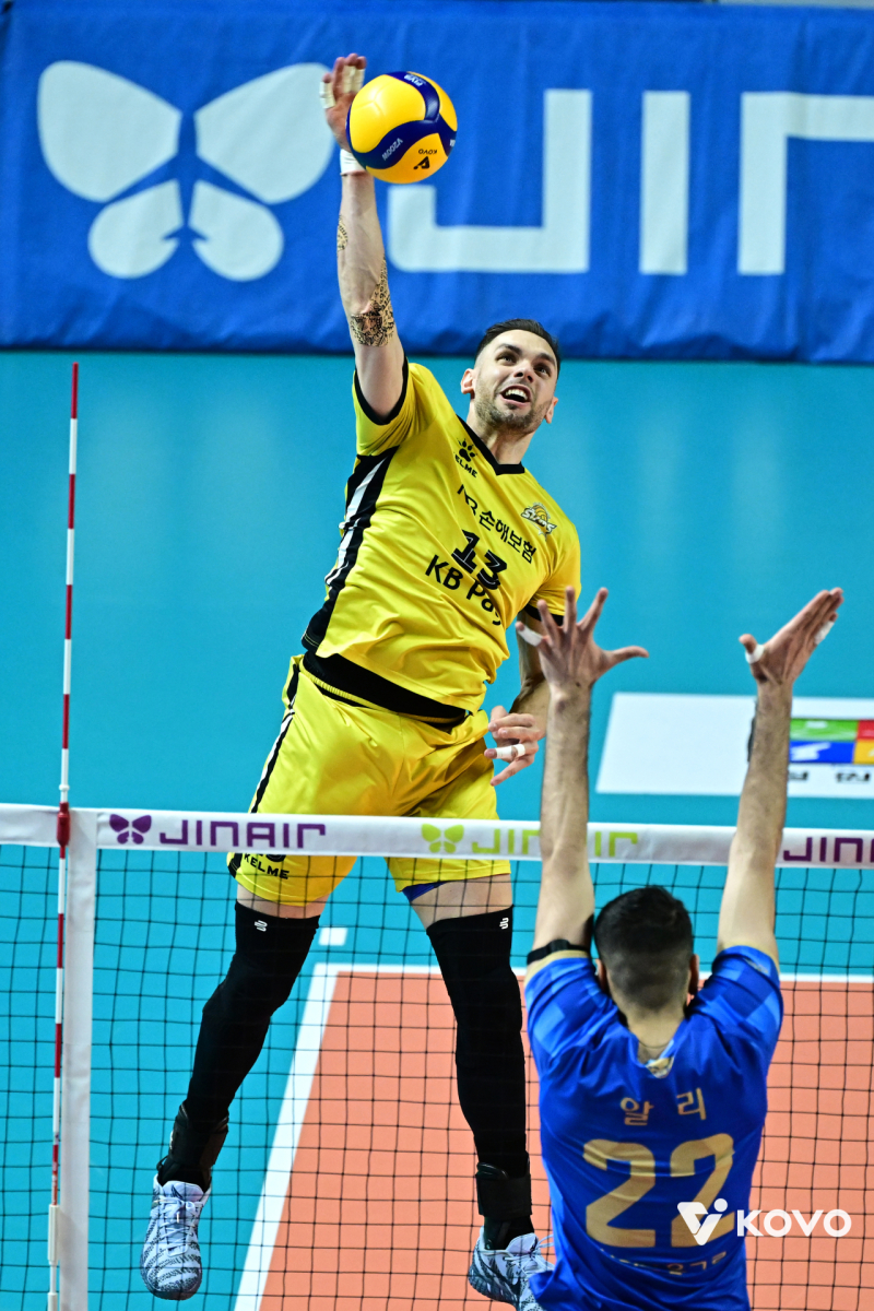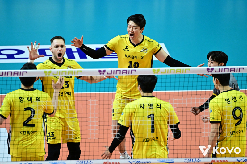 KB손해보험은 28일 오후 2시 서울 장충체육관에서 열린 ‘진에어 2025~2026 V-리그’ 남자부 6라운드 우리카드와 원정 경기에서 세트스코어 3-2(25-20, 23-25, 25-20, 19-25, 15-13) 신승을 거뒀다.