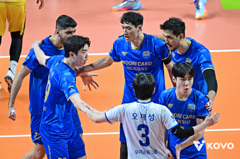 6연승을 노리던 우리카드가 홈에서 KB손해보험에 패했다. 1세트에 비예나가 맹활약한 KB손해보험은 승부의 분수령이었던 3세트에서 임성진과 차영석이 승리를 견인했고, 2-2로 맞선 운명의 5세트에서 승부를 결정했다.