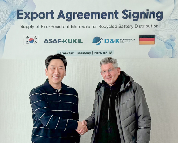 내화 전문기업 아사프국일은 독일 산업·특수 물류 기업 DK Logistics와 재생 배터리 물류 안전 구조체 공급 계약을 체결했다. 이번 계약은 단순 내화 소재 수출이 아닌 재생 배터리 운송 컨테이너와 카고트럭 내부에 적용되는 구조 일체형 내화·차열 패널 솔루션을 공급하는 것이 핵심이다.