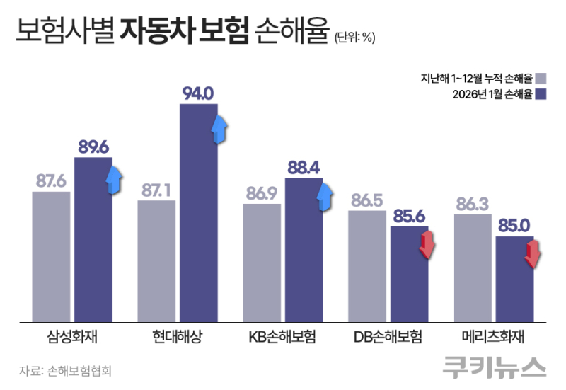 올해 들어서도 상황은 크게 개선되지 않는 모습이다. 지난 1월 대형 손해보험사들의 자동차보험 손해율은 85~94% 수준으로 집계돼 모두 손익분기점을 웃돌았다. 손해율 상승이 이어질 경우 보험료 추가 인상 압력이 커질 것이라는 관측도 나온다. 보험사들은 우선 언더라이팅(보험 인수 심사)을 강화하고 고위험 계약을 선별하는 등 대응에 나서고 있다.