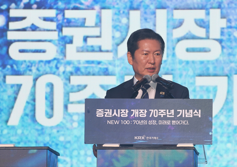 정청래 더불어민주당 대표는 3일 증권시장 개장 70주년 기념식에서 “불과 약 8개월 전 2700선에 머물던 코스피 지수가 오늘 아침에 6100을 기록했다. 몇 달 전만 해도 상상할 수 없는 지수가 우리 눈앞에서 현실로 펼쳐지고 있는 것”이라며 “지금 우리 주식시장은 바야흐로 꿈의 시대를 맞이하고 있다”고 했다.