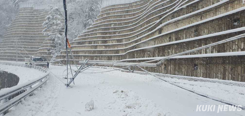 대설특보가 발효된 가운데 이날 오전 7시 3분 강릉시 왕산면 노추산로에서 제설차 단독 사고가 발생했으나 인명 피해는 없었다.
