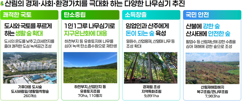 산림청은 지역별 기후와 토양 수분 상태를 고려해 탄력적으로 추진함으로써 식재 생존율을 높이고 생태적으로 건강한 숲을 조성할 방침이다.