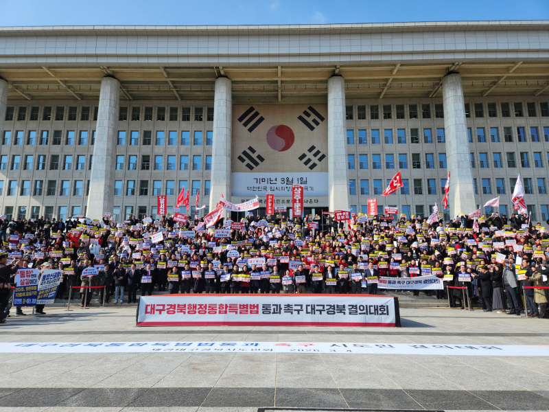결의대회는 수도권 집중과 지역 소멸 위기 속에서 대구경북의 경쟁력 강화를 위해 특별법이 시급히 제정돼야 한다는 지역민의 뜻을 담았다.