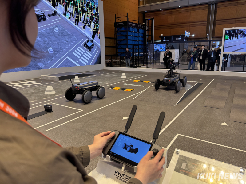 네 개의 바퀴가 각자 높이를 조절하며 움직이는 모습은 네 발로 균형을 잡고 걷는 동물을 떠올리게 했다. 현대자동차그룹이 개발한 모바일 로봇 플랫폼 ‘모베드(MobED)' 이야기다. 모베드가 산업 현장에서 활용 가능한 차세대 로봇 플랫폼으로 모습을 드러냈다. 관람객들은 직접 조작 체험을 통해 험로 주행과 안정적인 영상 송출 능력을 확인할 수 있었다.