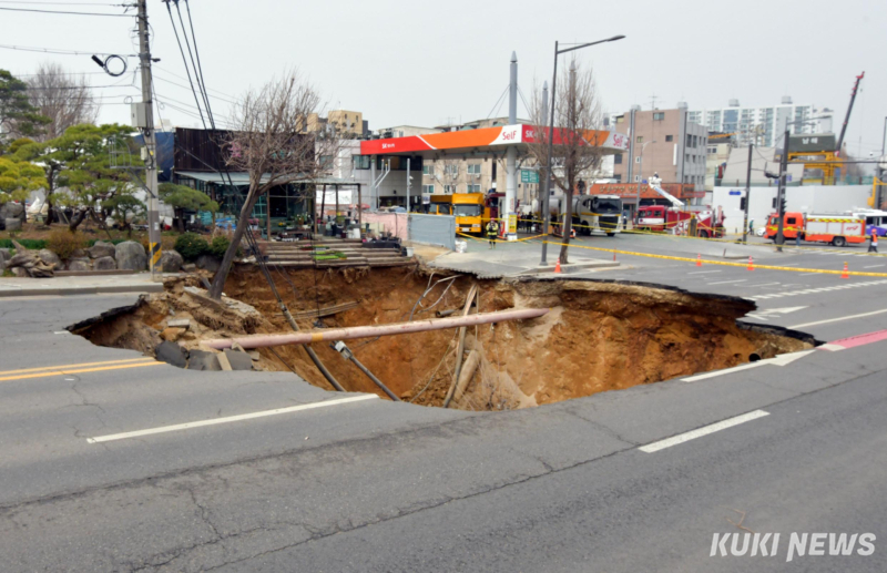 지난해 3월 서울 강동구 명일동에서 발생한 싱크홀(땅꺼짐) 사고로 숨진 배달 기사의 유가족이 오세훈 서울시장과 김보현 대우건설 대표를 상대로 경찰에 고소장을 제출했다. 사고 발생 약 1년 만이다.
