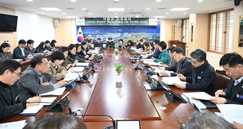 거창군은 지난 3일 김현미 부군수 주재로 ‘2026년 주요업무 핵심 성과목표제 사업 추진계획 보고회’를 개최하고 올해 군정 핵심사업 추진 방향을 점검했다.