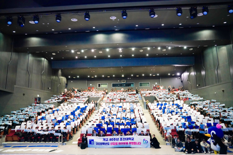 조선대는 지난달 27일 해오름관에서 ‘2026학년도 신입생 입학식’을 개최했다고 밝혔다. 이번 입학식은 K-컬처공연·기획학과 재학생들이 행사 기획부터 운영 전반에 참여해 젊은 감각의 무대를 연출하며 신입생들의 큰 호응을 얻었다.