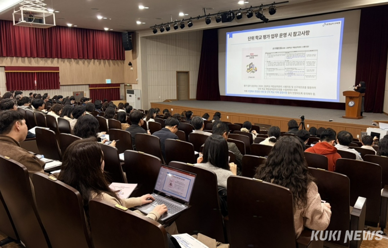 충남교육청은 5일 공주 소재 교육연수원에서 중고등학교 교감 및 교사들을 대상으로 2026 학생 평가 및 학교생활기록부 업무 담당자 연수를 실시했다. 충남교육청은 5~6일까지 공주 소재 교육연수원과 충남형 미래교육 통합플랫폼 마주온을 통해 중고등학교 교감 및 교사 1,000여 명을 대상으로 2026 학생 평가 및 학교생활기록부 업무 담당자 연수를 실시한다.