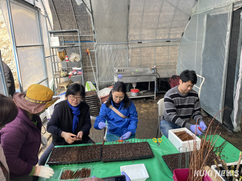 박재균 강원도의원 춘천시 제6선거구 예비후보와 이선희 강원도의원 비례대표 후보, 이성애 춘천시의원 비례대표 후보는 5일 춘천시 동면에서 임업인들의 일손을 돕는 삽목 작업 봉사활동을 진행했다.