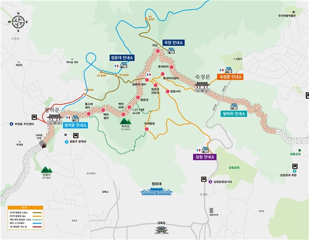 탐방객 안내와 안전 관리를 위한 안내소 운영도 재개된다. 국가유산청은 3월 중 창의문, 청운대, 곡장, 숙정문, 말바위, 삼청 등 6곳에 북악산 출입 안내소를 설치해 운영할 예정이다. 안내소에서는 탐방객 출입 안내와 안전 관리, 탐방 프로그램 제공 등이 이뤄진다.