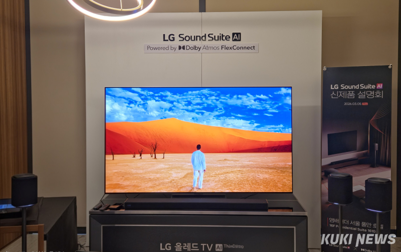 인공지능(AI) 기능도 강화했다. 사운드바에는 2026년형 LG 올레드 TV와 동일한 ‘3세대 알파11 AI 프로세서’가 탑재돼 콘텐츠를 분석하고 음향을 자동으로 조정한다. AI가 배경음악과 배우의 대사를 칼같이 분리해, 폭발음이 터지는 와중에도 대사를 또렷하게 들려준다.