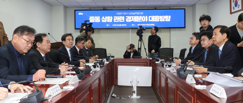 더불어민주당과 재정경제부는 6일 국회에서 당정 실무협의를 갖고 중동 사태에 따른 국제 유가 상승과 국내 석유 가격 대응 방안을 논의했다. 이날 회의에는 구윤철 부총리 겸 재정경제부 장관과 국회 재정경제기획위원회 소속 민주당 의원들이 참석했다.