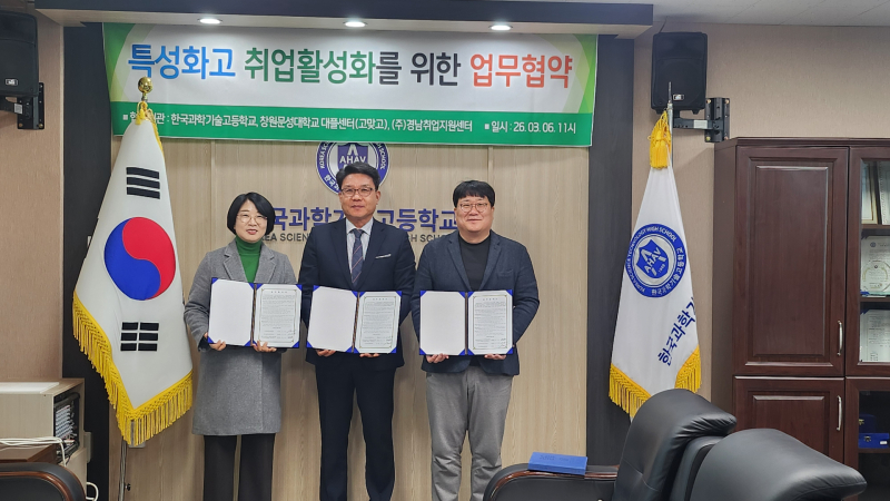 창원문성대학교 고교생 맞춤형 고용서비스 사업팀은 6일 한국과학기술고등학교에서 지역 미래 인재 양성을 위한 ‘고교생 맞춤형 고용서비스’ 업무협약을 체결했다.