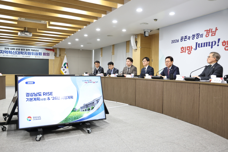 경남도는 6일 도청 도정회의실에서 박완수 도지사와 도내 대학 총장, 산업계 전문가 등이 참석한 가운데 ‘경남지역혁신대학지원위원회’를 열고 2026년도 RISE 시행계획을 심의·확정했다.