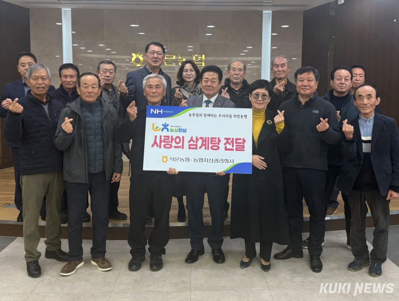농협자산관리회사 대전충남지사는 석문농업협동조합과 함께 9일 당진시 석문면 통정1리 마을회관을 찾아 노인회에 사랑의 삼계탕(100인분)을 지원했다고 밝혔다.