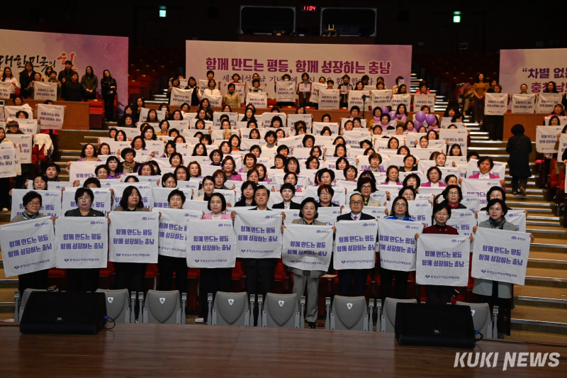 충남도는 9일 도청 문예회관에서 ‘함께 만드는 평등, 함께 성장하는 충남’을 주제로 세계 여성의 날 기념식을 개최했다. 충남도는 9일 도청 문예회관에서 ‘함께 만드는 평등, 함께 성장하는 충남’을 주제로 세계 여성의 날 기념식을 개최했다.