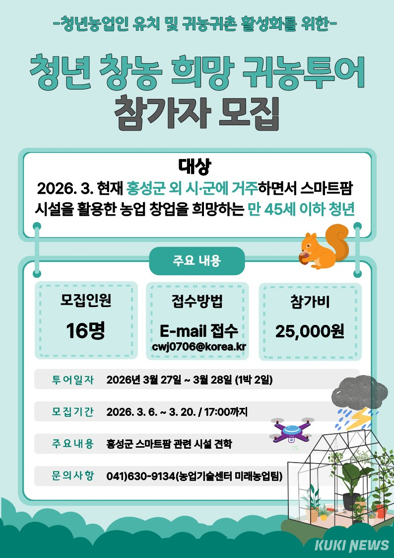 군 관계자는 “이번 프로그램은 미래 농업의 핵심인 청년들에게 홍성군의 스마트팜을 알리고, 안정적인 정착을 돕기 위해 마련했다”며, “홍성군에 우수한 농업 인재들이 모여 꿈을 펼칠 수 있도록 환경 조성에 노력하겠다”고 말했다.
