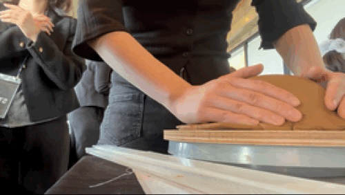 도자기 체험은 참가자들이 직접 흙을 만져 그릇을 만드는 방식으로 진행됐다. 흙을 밀대로 밀어 일정한 두께의 판을 만든 뒤 동그랗게 형태를 잡아 몰드 위에 올려 기본 모양을 만들고, 이후 가장자리를 정리하거나 도구를 이용해 표면에 무늬를 내며 형태를 다듬는 과정이 이어졌다. 마지막 단계에서는 각자 만든 그릇 바닥에 이름을 새기고 원하는 색상을 표시한 뒤 소성 과정을 거치도록 했다.