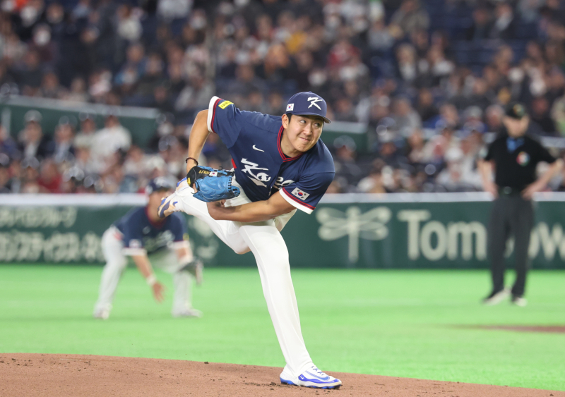 손주영은 9일 일본 도쿄돔에서 열린 호주와의 ‘2026 월드베이스볼클래식(WBC)’ C조 4차전 경기에서 선발투수로 나와 1이닝 동안 5명의 타자를 상대로 1피안타 1사사구 무실점을 기록했다. 2회말 한국이 2-0으로 이기고 있다.