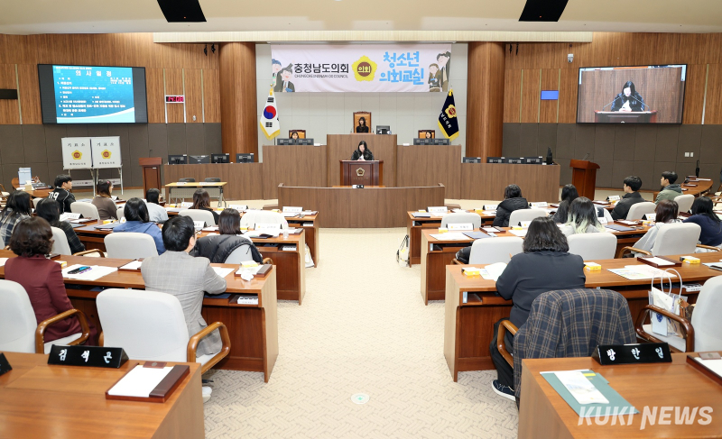 충남도의회는 10일 충청남도학교밖청소년지원센터 학생 20명과 지도교사 19명이 참여한 가운데 ‘청소년 의회교실’을 열었다.