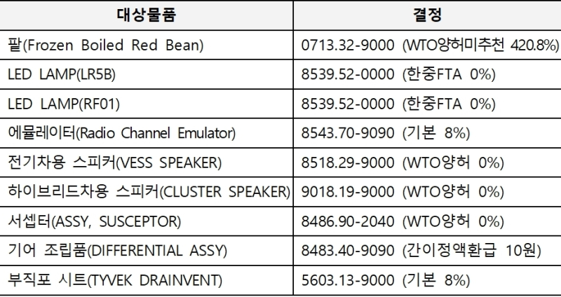 또 자동차 후미등과 제동등 등에 사용되는 차량용 적색 LED 광원 2종은 ‘LED 램프(HS코드 8539.52-0000)’로 분류됐다.