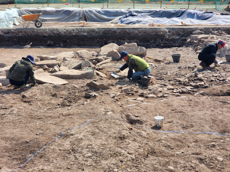 의령군에 따르면 지난해 ‘흥미 제작 놀이터’ 건립을 위한 기반 조성 과정에서 대규모 돌무더기가 발견됐으며, 군은 즉시 국가유산청에 신고했다. 이후 매장유산 검토와 표본조사를 거쳐 지난 1월 14일부터 가야문화연구원이 본격적인 발굴조사를 진행하고 있다.