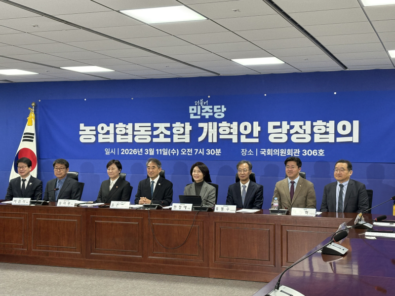 당정은 11일 서울 영등포구 국회에서 ‘농업협동조합 개혁안 당정협의’를 열고 정부가 최근 발표한 농협 특별감사 결과를 바탕으로 농협 개혁안과 제도화 방안을 논의했다. 국회 농림축산식품해양수산위원회 민주당 간사 윤준병 의원은 회의 직후 기자들과 만나 “개혁 과제에 대해 전반적으로 논의했고, 빠른 시간 내 개혁과제가 제도화돼 현장에서 실천될 수 있는 여건을 만들어 가자고 했다”고 밝혔다.