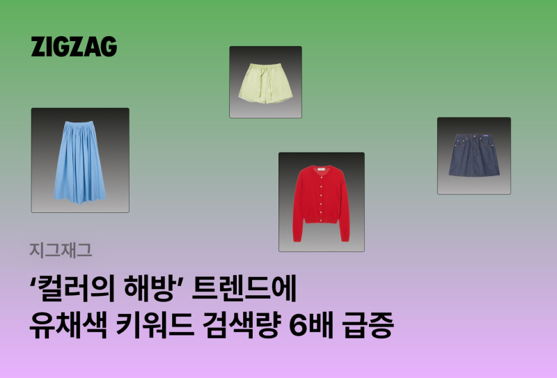 실제로 지그재그가 최근 2주간(2월 24일~3월 9일) 검색 빅데이터를 분석한 결과 초록·보라 등 컬러 키워드 검색량이 크게 늘어난 것으로 나타났다. 반면 흰색·검정·회색·베이지 등 무채색 검색량은 전년과 비슷한 수준을 유지했다.