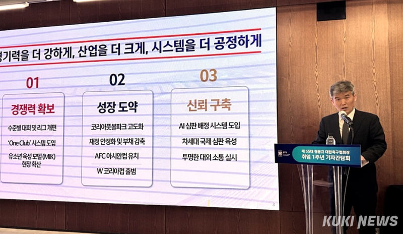 어느덧 취임 1주년을 맞은 정몽규 제55대 대한축구협회장이 취임 1주년 기자간담회를 열었다.