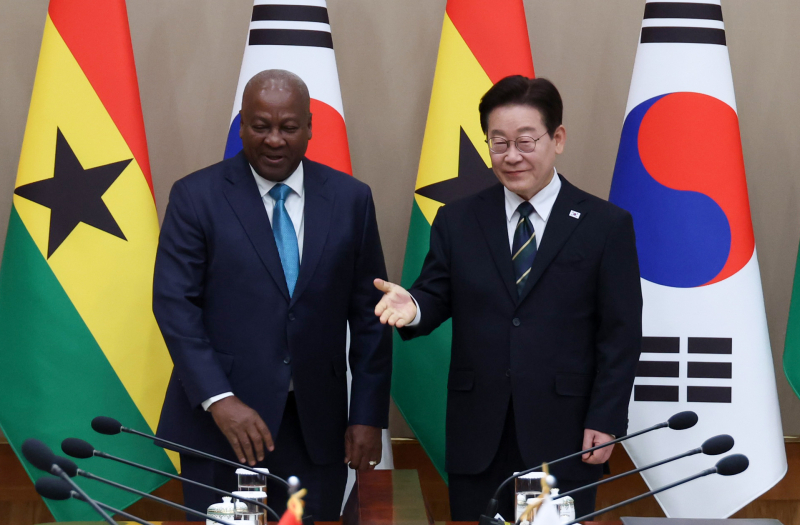 이재명 대통령이 11일 존 드라마니 마하마 가나 대통령과 정상회담을 갖고 기후변화와 디지털 협력, 해양안보 분야에서 협력을 강화하기 위한 협정 및 양해각서(MOU)를 체결했다.