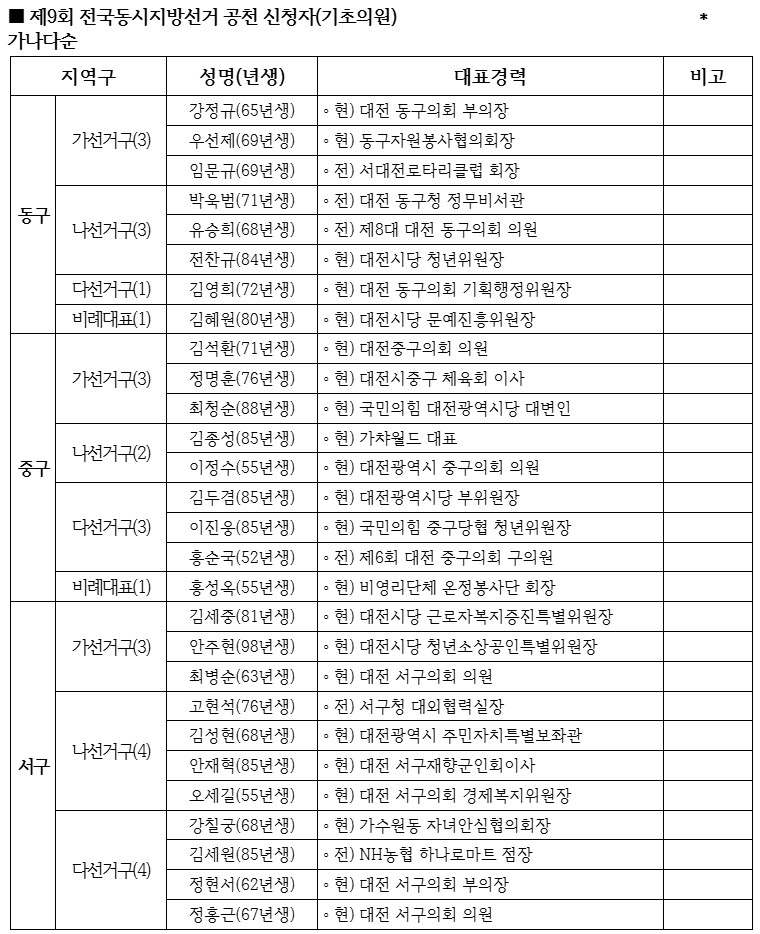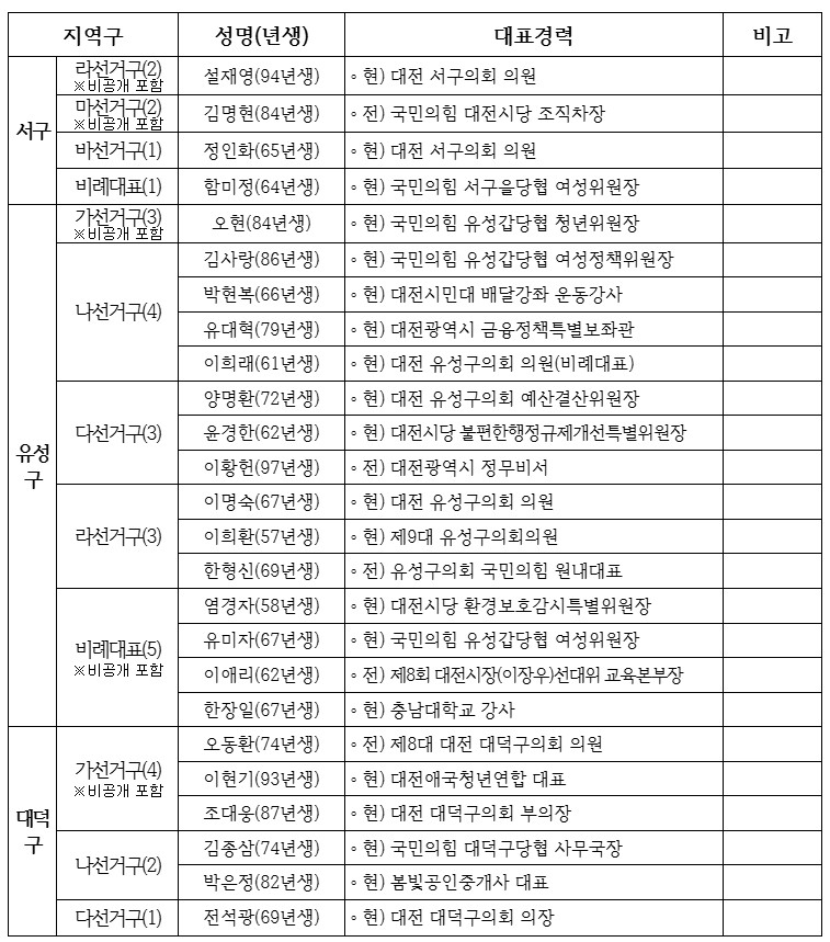 국힘 대전시당 공천관리위원회(위원장 이은권)는 11일 제9회 전국동시지방선거 기초의원 후보자 공천 신청을 접수한 결과 총 59명이 접수했다고 12일 밝혔다.