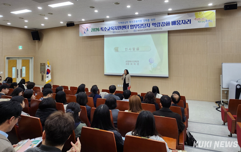 충남교육청은 13일 아산 소재 과학교육원에서 ‘2026 특수교육지원센터 업무 담당자 역량 강화 연수’를 개최했다. 충남교육청은 13일 아산 소재 과학교육원에서 교육지원청 특수교육 담당 장학사와 특수교육지원센터 업무 담당자 140여 명을 대상으로 ‘2026 특수교육지원센터 업무 담당자 역량 강화 연수’를 개최했다.