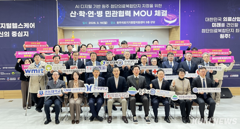 원주시는 16일 오후 원주의료기기종합지원센터에서 ‘첨단의료복합단지 원주 지정을 위한 산·학·연·병 민관협력 업무 협약식’을 개최했다.