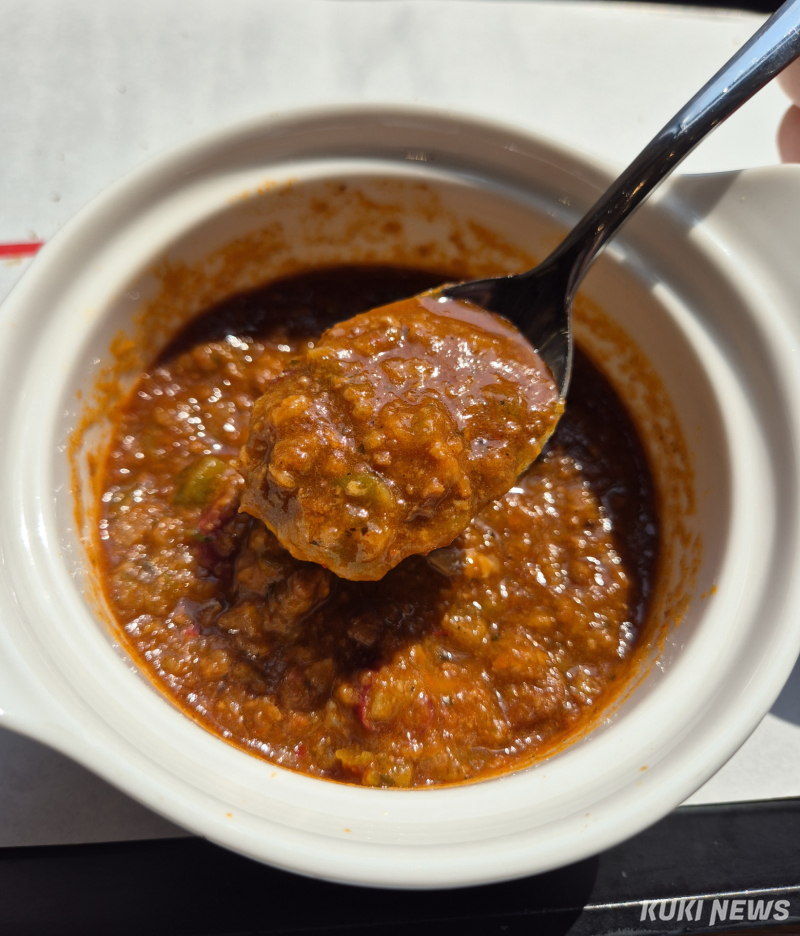 마라처럼 얼얼한 향신료의 매운맛이라기보다는 토마토와 고기가 어우러진 칠리 특유의 매콤함이 서서히 쌓이는 느낌이다.