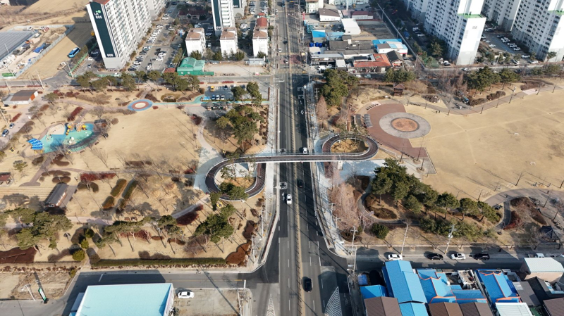 교량은 설계 단계부터 ‘무장애 육교’ 공법을 채택해 노약자, 장애인, 유모차 이용객 등 교통약자들이 계단 없이도 편리하게 이용할 수 있도록 조성한 것이 특징이다.