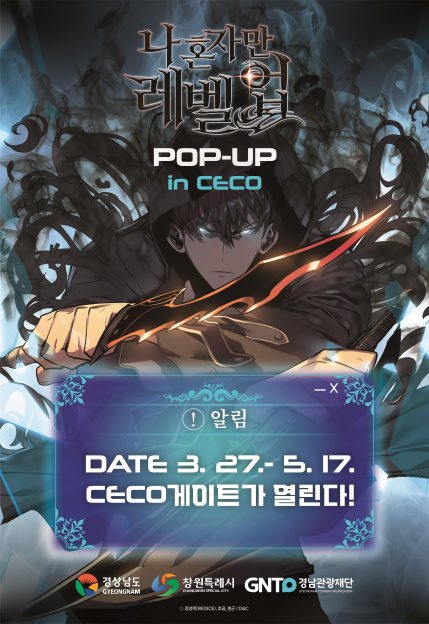 경상남도와 창원시, 경상남도관광재단은 3월 27일부터 5월 17일까지 52일간 창원컨벤션센터 1층 상설전시장에서 ‘나 혼자만 레벨업 POP-UP in CECO’를 개최한다. 이번 행사는 수도권 외 지역에서 처음 열리는 팝업스토어다.