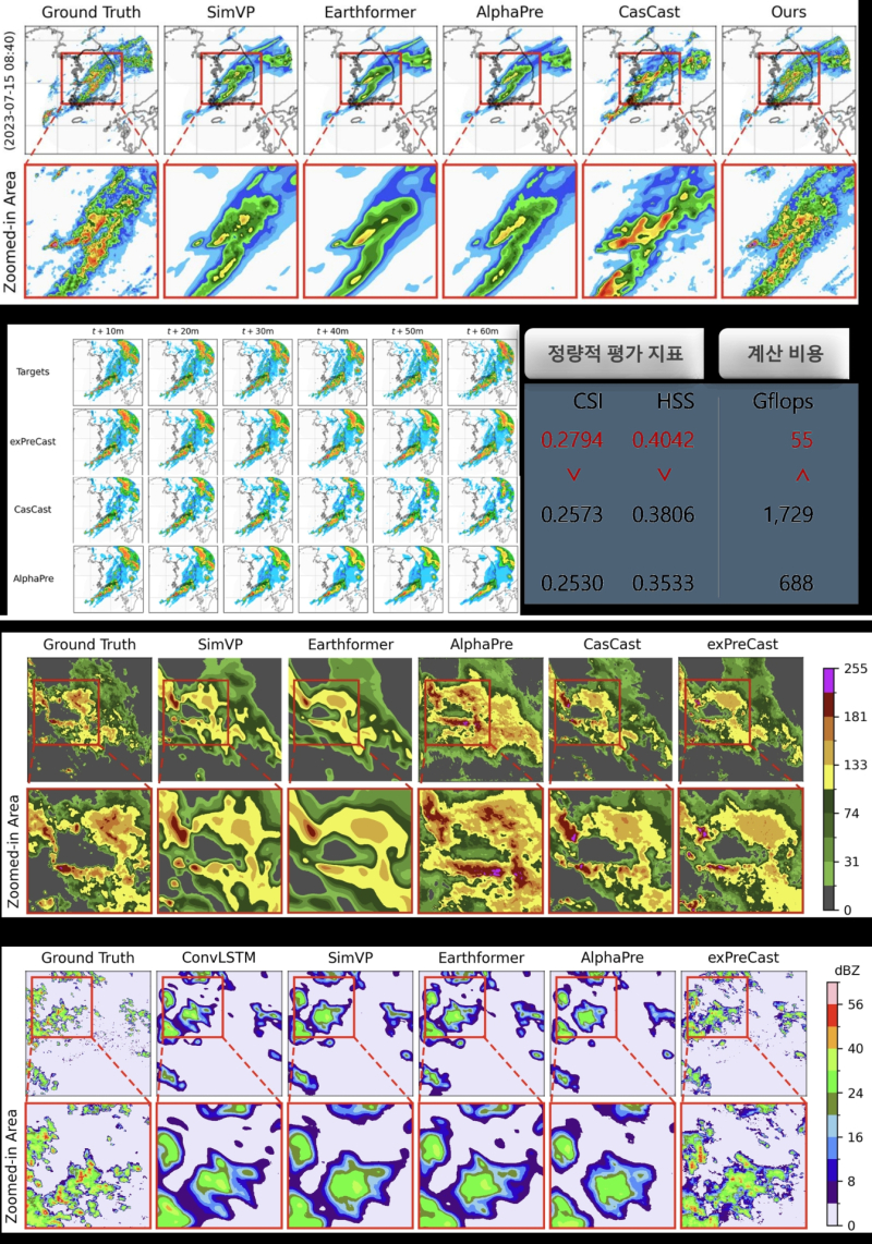 실제 우리나라 기상청 자료를 포함해 미국과 프랑스의 관측 데이터로 성능을 검증한 결과 기존 최신 글로벌 모델보다 높은 정확도를 기록했고, 특히 우리나라의 극단적 폭우 상황에 대한 계산 효율을 20배 이상 개선했다.