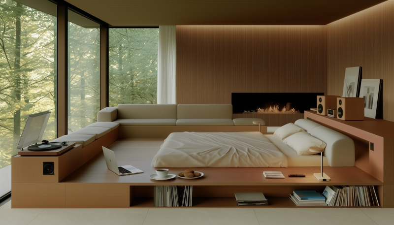 침실은 마음의 안정과 숙면을 유도하는 방향으로 꾸미는 것이 바람직하다. 침대 주변 조도를 낮추고 간접등을 활용하면 보다 편안한 분위기를 조성할 수 있다. 강한 대비 대신 베이지와 아이보리처럼 유사한 계열의 색상을 활용하면 시각적 피로를 줄이는 데 도움이 된다. 취침 직전까지 강한 직광이나 미디어에 노출되지 않도록 침대에서 휴대폰이 보이지 않는 방향으로 배치하는 것도 숙면 환경 조성에 긍정적이다. 또 침대 헤드보드와 협탁, 조명 등은 각진 형태보다 곡선형 제품을 활용해 심리적·촉각적 안정감을 높이는 것이 좋다.