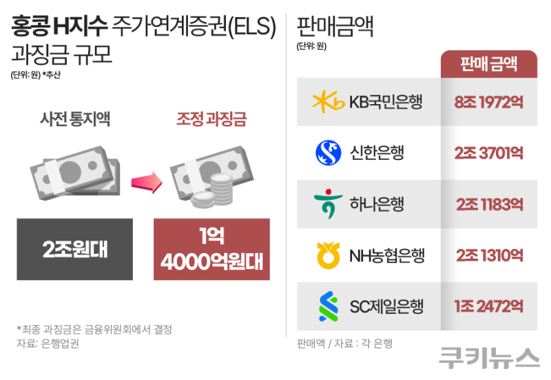 앞서 금융감독원 제재심의위원회는 KB국민·신한·하나·NH농협·SC제일은행 등 주요 판매 은행들에 대해 총 1조4000억원 규모의 과징금을 부과하기로 했다. 이는 당초 사전 통보됐던 약 2조원 수준에서 감경된 금액이다.