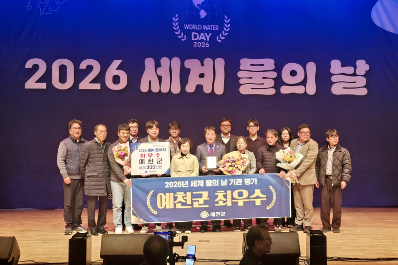 예천군은 구미시 강동문화복지회관에서 열린 ‘2026년 세계 물의 날 기념행사’에서 기관 표창을 수상했다고 20일 밝혔다.