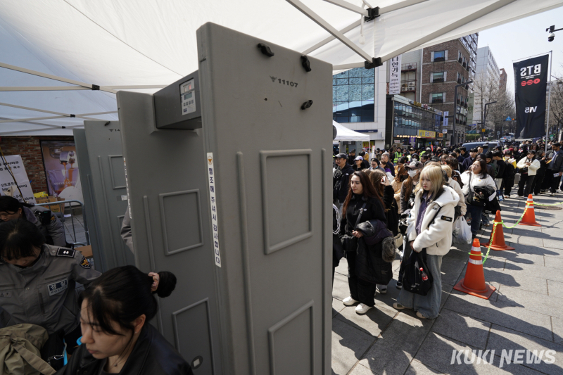 당초 정부와 통신업계는 이날 약 26만명이 몰릴 것으로 추산했으나 예상 인파 규모에 비해 질서가 유지돼 정돈된 느낌이었다. 통로가 정해져 이동에 제한은 있었지만 이동 자체는 어렵지 않았다. 공연장 방향에 위치한 임시 검문소도 수월하게 통과할 수 있었다. 검문소는 금속탐지기 구간을 지나 가방 내부를 확인하는 절차로 이뤄졌는데 시민은 물론, 외국인 팬을 포함한 대다수가 적극적으로 협조했다.