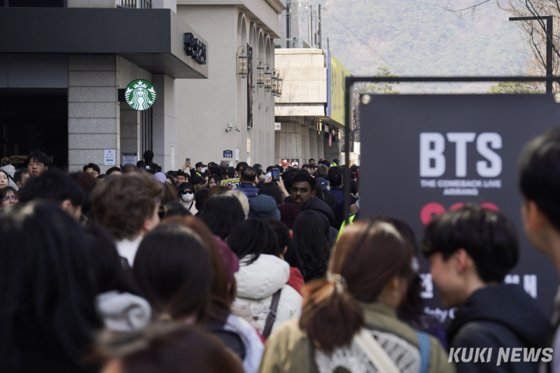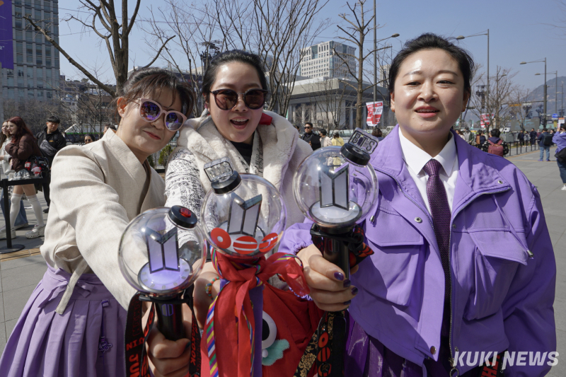 21일 전 세계 아미(팬덤명)가 서울 광화문 광장에 집결했다. 그룹 방탄소년단(RM, 진, 슈가, 제이홉, 지민, 뷔, 정국)의 완전체 컴백 공연을 보기 위해 각국에서 모인 이들의 얼굴에는 지친 기색보다 설렘이 역력했다. K팝과 방탄소년단의 글로벌 영향력을 체감할 수 있는 자리였다.