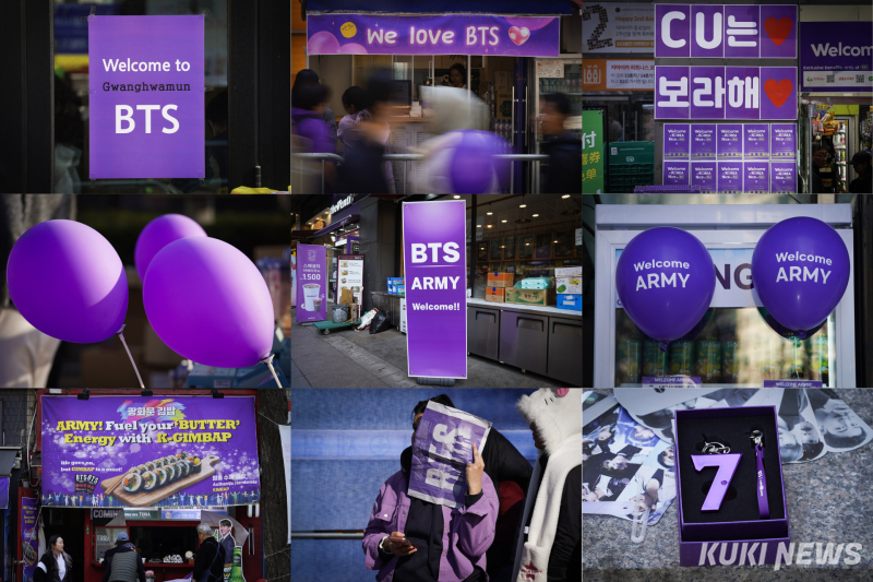 도심 야경도 달라졌다. 남산서울타워·롯데월드타워·숭례문 등 주요 랜드마크에 붉은 조명이 켜졌고, 세종대로와 명동 일대에는 보라색 빛이 더해졌다. 이번 앨범 콘셉트 색인 붉은색과 아미의 보라색이 겹친 서울의 밤은 공연을 앞둔 기대감 그 자체다.