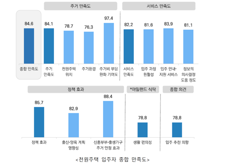 출산·양육 계획에 긍정적 영향을 미쳤다는 응답은 82.9점, 신혼·출생가구 주거 안정 효과는 88.4점으로 나타났다.