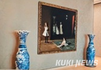 앞의 밝은 공간과 뒤편의 희미하게 드러나는 응접실은 긴장감을 형성한다. 커다란 청화백자 꽃병은 장식을 넘어 인물들의 존재감을 상대적으로 약화시키며 공간의 분위기를 압도한다. 이러한 구도와 빛의 실험은 관람자들에게 낯설고도 강렬한 인상을 남겼고, 초상화가 단순한 재현이 아닌 심리적·사회적 의미를 담아낼 수 있음을 보여주었다.