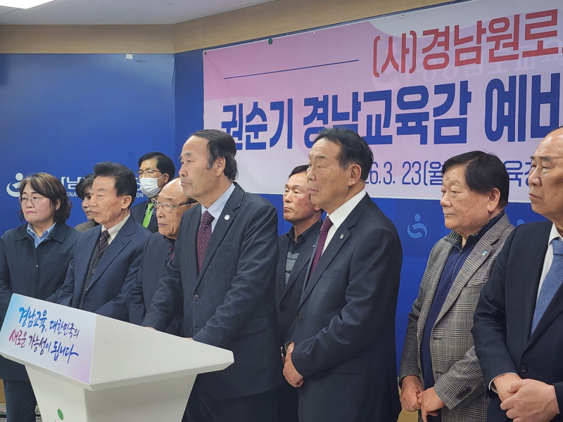 경상남도원로회는 23일 경남도교육청 브리핑룸에서 기자회견을 열고 “경남교육의 올바른 방향 정립과 지속 가능한 발전을 위해 권순기 후보를 지지한다”고 밝혔다.